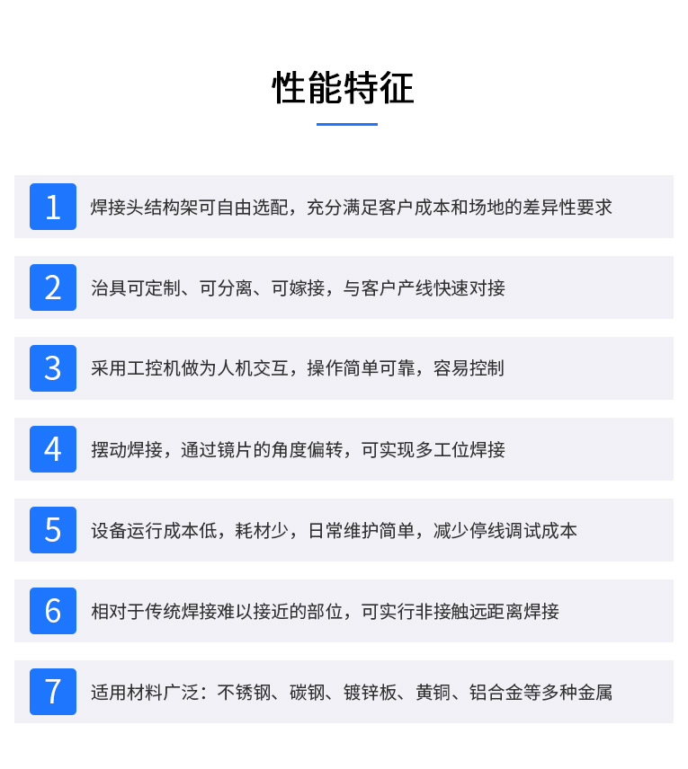 2、強大的PC控制,易于編程、調試和維護??赏瓿勺詣踊虬胱詣拥狞c焊、對接焊、疊焊、密封焊,針對復雜的平面直線、圓弧及任意軌跡的焊接。