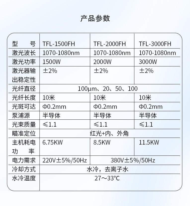 激光波長 1070-1080nm 1070-1080nm 1070-1080nm 1070-1080nm