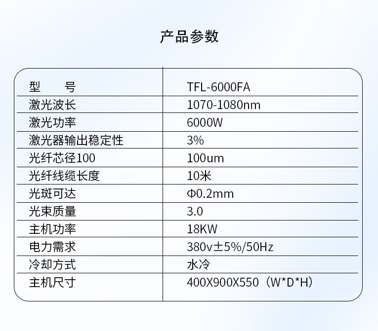通發激光光纖激光器配置